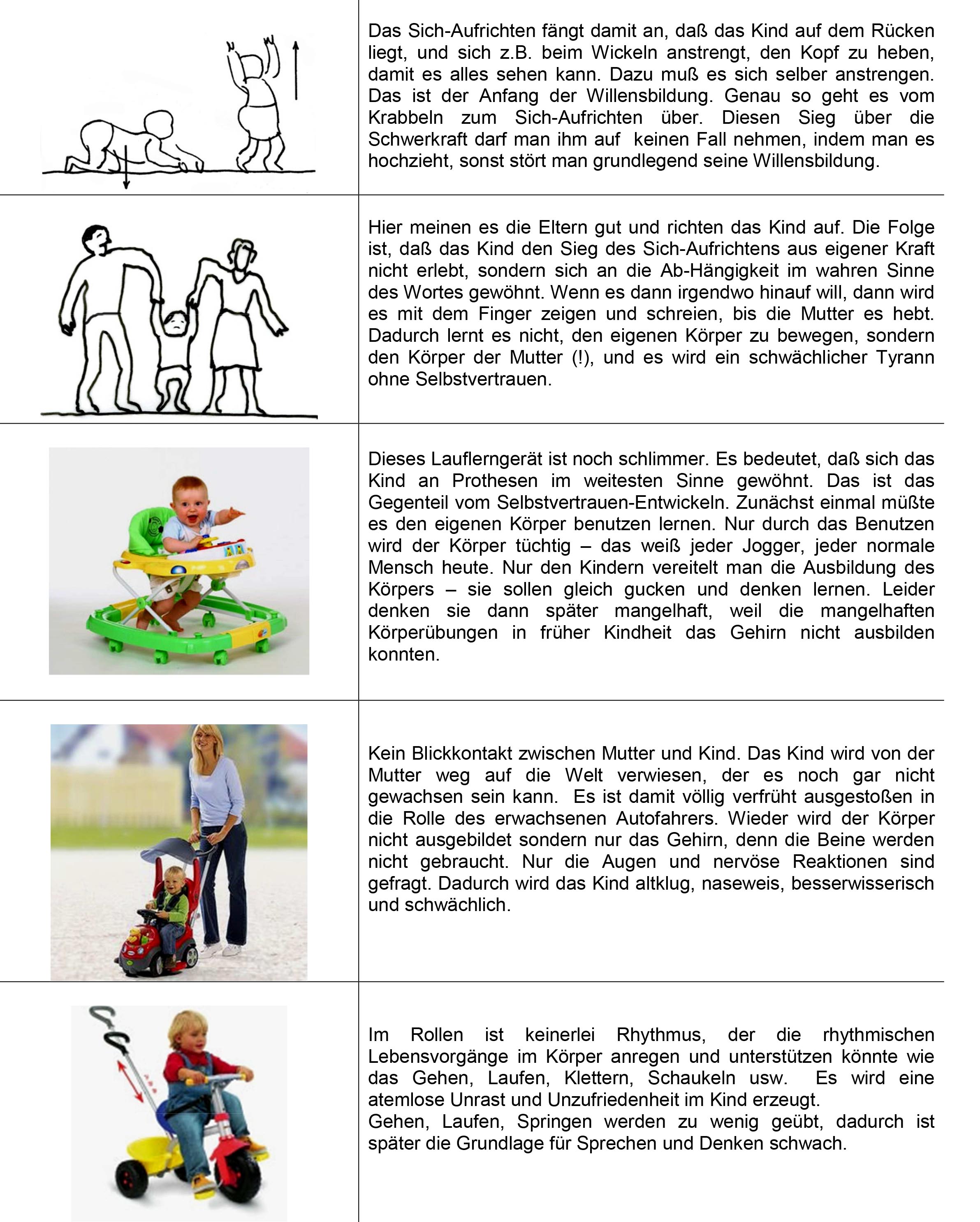 In neuer Zeit hat die junge Wissenschaft der Kinesik festgestellt, daß die gesamte Körpermuskulatur des Sprechers bei jedem Laut bestimmte, dem bloßen Auge nicht wahrnehmbare, Bewegungen vollführt. Der Hörer seinerseits reagiert mit den selben feinen Bewegungen mit einer minimalen Zeitverzögerung von ca. 0,05 Sekunden. Wir Erwachsenen erleben es ja auch, daß wir uns selber räuspern müssen, wenn wir einem heiseren Vortragsredner lauschen. Der Entdecker William S. Condon sagt: "Bildlich gesehen ist es, als ob der ganze Körper des Hörers in präziser und fließender Begleitung zur gesprochenen Sprache tanzte." Aus diesen Bewegungen heraus formt das Kind seine Sprache. Daran können wir sehen, wie wichtig es ist, daß der Erwachsene vorbildlich spricht, siehe Punkt 13).